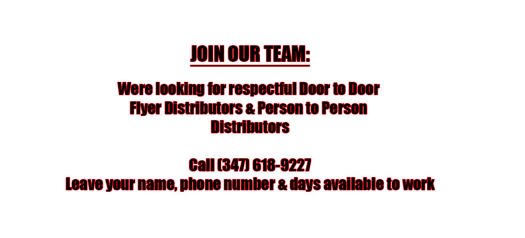 one week advance notice to have your ad included. We partner with the best in the business to get your ad in every borough of NYC if that is want you want, you can also choose specific zip codes. We can also bag and distribute your flyer Individually. Contact us through chat, email, or phone. We can have a representative meet with you at your home our business.